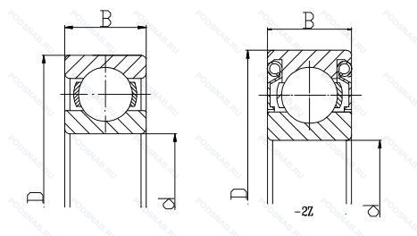 | Обозначение | Конструктивные особенности | Внутренний (d) | Наружный (D) | Ширина (B) |