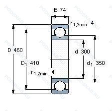 Модификации шарикового подшипника 6060M/C3 — это измененное основное конструктивное исполнение 6060, основные размеры (300x460x74) не отличаются.