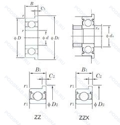 F697 ZZ — Подшипник однорядный шариковый радиальный, модификация основного исполнения F697, выпускается производителями: FBJ, ISB, ISO, KOYO, NIS.