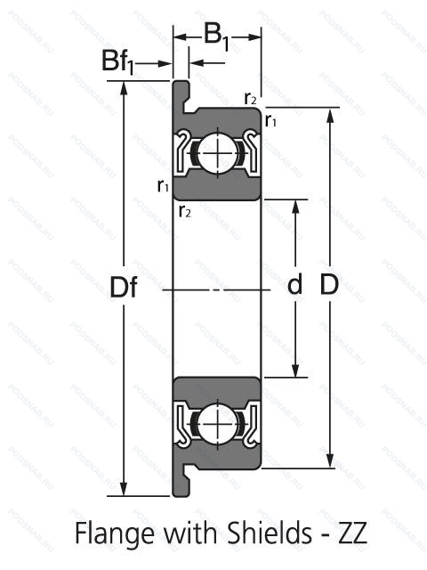 | F682ZZ | ISO | Защитные металлические шайбы с обеих сторон. Подшипник с фланцевым наружным кольцом. |