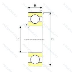 | Обозначение | Конструктивные особенности | Внутренний (d) | Наружный (D) | Ширина (B) |