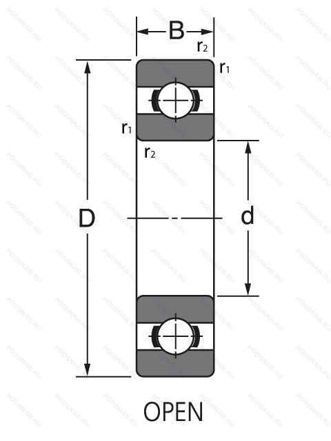 | Обозначение | Конструктивные особенности | Внутренний (d) | Наружный (D) | Ширина (B) |