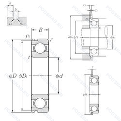 | 61905NR | ISO | Канавка под стопорное кольцо на наружном кольце с соответствующим стопорным кольцом. |