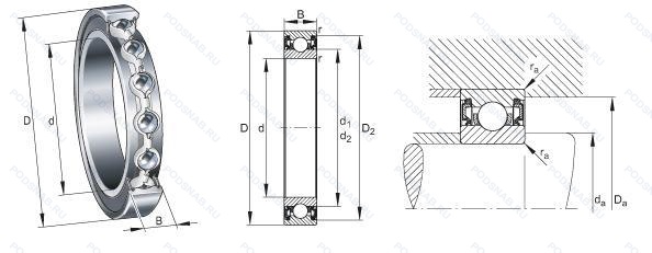 | Обозначение | Конструктивные особенности | Внутренний (d) | Наружный (D) | Ширина (B) |