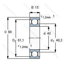 Размер подшипника: 40x68x15 мм.