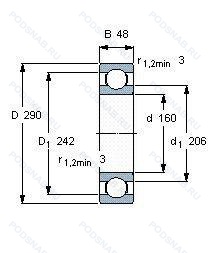 | 232W | Шариковый радиальный однорядный подшипник. Максимальная грузоподъемность. | 160.00 | 290.00 | 48.00 |