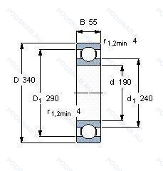 | 6238 | Подшипник однорядный шариковый радиальный. Основное конструктивное исполнение. |