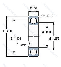 6338M C3 — Подшипник однорядный шариковый радиальный, модификация основного исполнения 6338, выпускается производителями: FAG, NSK, SKF.