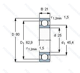 | 6-405 АШ1 | Шариковый радиальный однорядный подшипник. Повышенная грузоподъемность. Нормы шумности. | 25.00 | 80.00 | 21.00 |