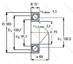 Размер подшипника: 75x160x37 мм.