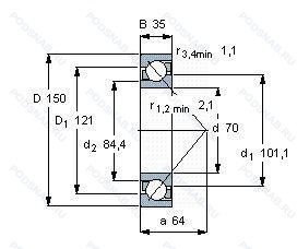Аналог шарикового подшипника 7314-B-JP-UA — это подшипник такого же размера dx70,Dx150,Bx35, типа и конструкции.