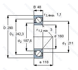| 7232B | Угол контакта 40°. |