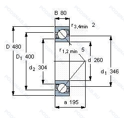 | 7252 BM | Подшипник шариковый однорядный радиально-упорный. |