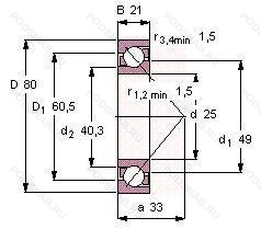 | 7405 A-UD | Двухрядный радиально-упорный шарикоподшипник без отверстия для смазки. |