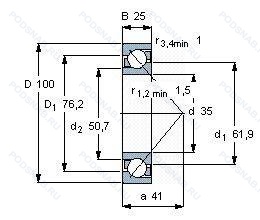 Размер подшипника: 35x100x25 мм.