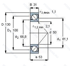 | 7410 A-UD | Двухрядный радиально-упорный шарикоподшипник без отверстия для смазки. |