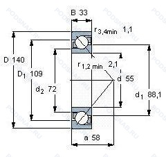 | 7411PJDU | Single-Row Angular Contact. Counterbored Inner And Outer Ring. Heavy Duty Bearing. With A 40° Угол контакта. |