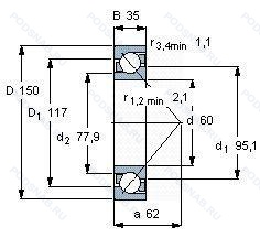 Аналог шарикового подшипника 7412-B-MP-UA — это подшипник такого же размера dx60,Dx150,Bx35, типа и конструкции.