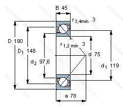 | 7415 A-UD | Двухрядный радиально-упорный шарикоподшипник без отверстия для смазки. |