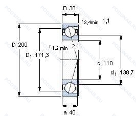 Аналог шарикового подшипника B7222-C-T-P4S-UL — это подшипник такого же размера dx110,Dx200,Bx38, типа и конструкции.