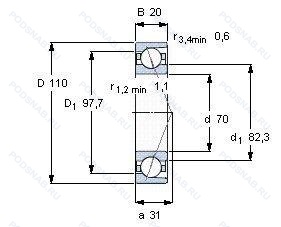 Размер подшипника: 70x110x20 мм.