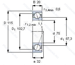 Размер подшипника: 75x115x20 мм.