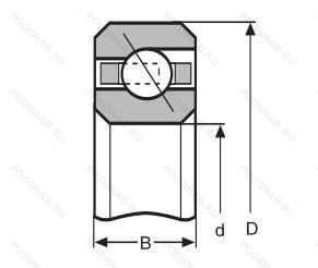 | Обозначение | Конструктивные особенности | Внутренний (d) | Наружный (D) | Ширина (B) |