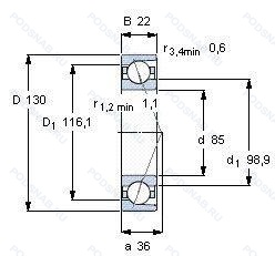 | 236117К | Шариковый радиально-упорный сдвоенный подшипник. «Замок» (скос) на внутреннем кольце плюс массивный сепаратор из текстолита. | 85.00 | 130.00 | 44.00 |