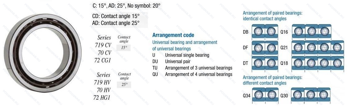 | 7216C | Угол контакта 15°. |