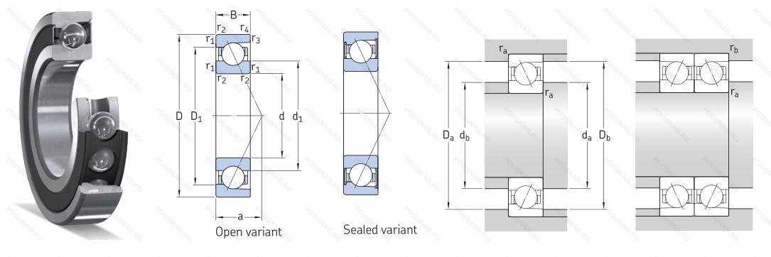 C-phenolic resin. e-external cage location. 1-15° угол контакта, подшипник для универсального монтажа. два подшипника. установленные по о-образной или х-образной схеме. имеют лёгкий преднатяг, p4 (skf)=abec.7.