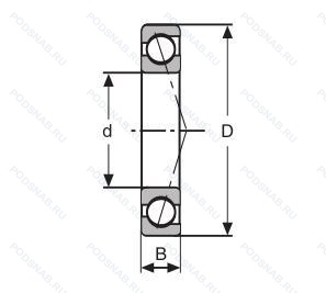 | Обозначение | Конструктивные особенности | Внутренний (d) | Наружный (D) | Ширина (B) |
