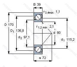 Размер подшипника: 80x170x39 мм.