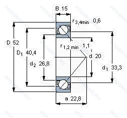 | 7304 A-UD | Двухрядный радиально-упорный шарикоподшипник без отверстия для смазки. |