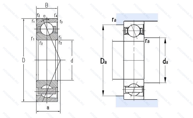 | 7310CDB | Однорядный радиально-упорный шарикоподшипник улучшенной конструкции с углом контакта 15°. |