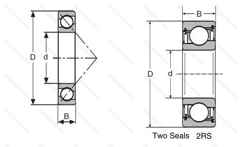 | Обозначение | Конструктивные особенности | Внутренний (d) | Наружный (D) | Ширина (B) |
