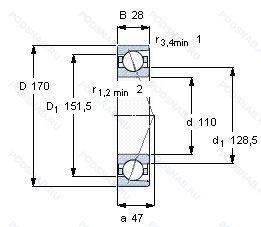 | 24-236122 К | Шариковый радиально-упорный сдвоенный подшипник. «Замок» (скос) на внутреннем кольце плюс массивный сепаратор из текстолита. | 100.00 | 170.00 | 56.00 |