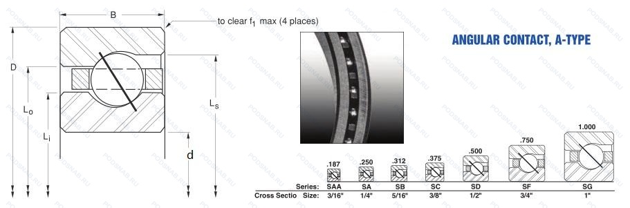 | L18TA508T | Подшипник шариковый с четырехточечным контактом. Цельный сепаратор из полиамида. усиленный стекловолокном. | 139.70 | 165.10 | 12.70 |