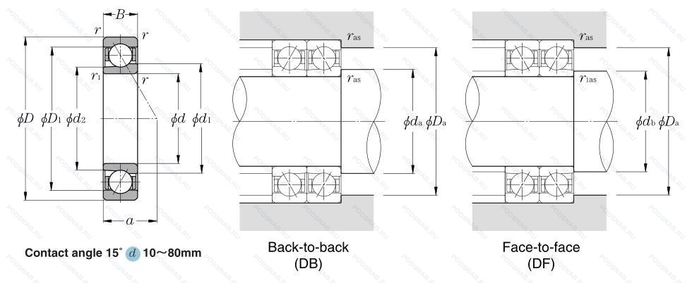 Дуплексные подшипники для установки в тандеме, специальная фаска, фенольный сепаратор, класс точности iso.