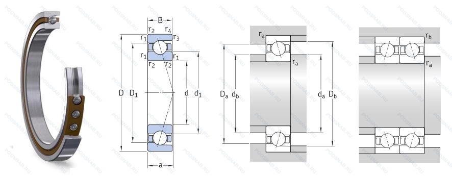 Серия - SEA. Минимальные габаритные размеры. Радиально-осевая нагрузка 1.500.000 ndm (масло), c-phenolic resin. e-external cage location. 1-15° угол контакта, подшипник для универсального монтажа. два подшипника. установленные по о-образной или х-образной схеме. имеют лёгкий преднатяг, расположение внешнего сепаратора, p4 (skf)=abec.7.