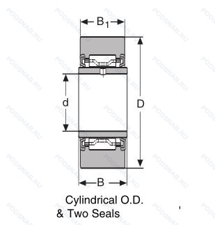 Игольчатый роликоподшипник с размерами по ISO 15, резиновые уплотнения с каждой стороны подшипника, опорные ролики игольчатого типа. цилиндрический наружный диаметр. литой сепаратор оконного типа из полиамида. усиленного стекловолокном.