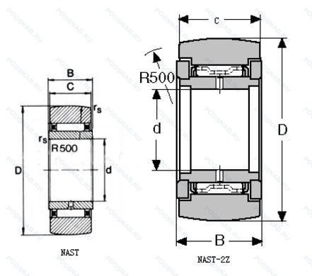 NAST15.2Z — Опорный ролик, модификация основного исполнения NAST15, выпускается производителями: DWB, FAG, SKF.