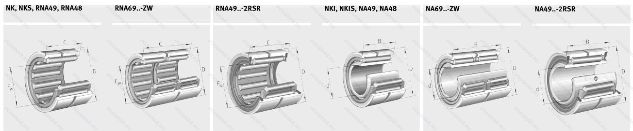 | RNA2200 2RSX | Rubber Seals At Each Side Of The Bearing. Temperature Range -30℃/+120℃. Цилиндрическая рабочая поверхность. |