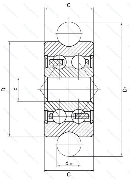 | Обозначение | Конструктивные особенности | Внутренний (d) | Наружный (D) | Ширина (B) |