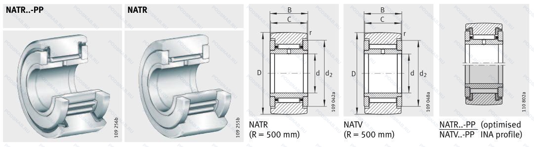 NATR50PPX — Опорный ролик, модификация основного исполнения NATR50, выпускается производителями: INA, NKE.