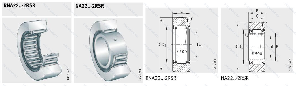 NA2200-2RSR — Опорный ролик, модификация основного исполнения NA2200, выпускается производителями: FAG, INA.