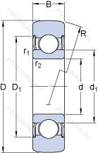 | Обозначение | Конструктивные особенности | Внутренний (d) | Наружный (D) | Ширина (B) |