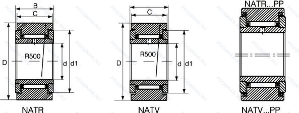 | NATV17-PP-X | Измененные размеры границ. введенные пересмотренными стандартами ISO. Уплотнения на каждой стороне подшипника. |