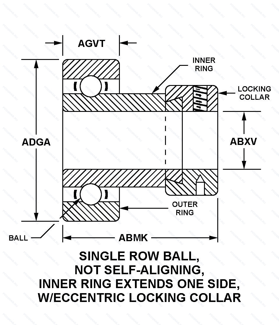 | AELS207D1 NR W3 | ISO | Канавка стопорного кольца на наружном кольце подшипника и соответствующим стопорным кольцом. Не требующий обслуживания тип. Корпусной подшипник с установочным винтом. |
