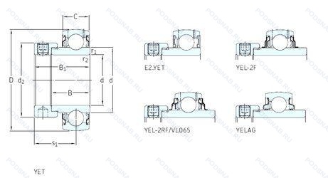 Модификации подшипника для корпуса YET206/VL065 — это измененное основное конструктивное исполнение YET206, основные размеры (30x62x23) не отличаются.