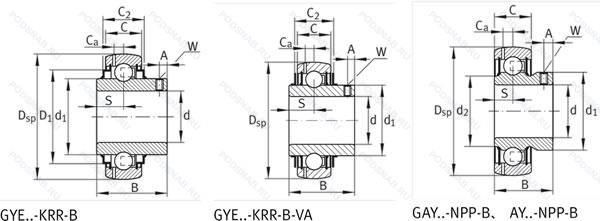 Модификации подшипника для корпуса GAY010NPPB — это измененное основное конструктивное исполнение GAY010, основные размеры (15x40x22) не отличаются.